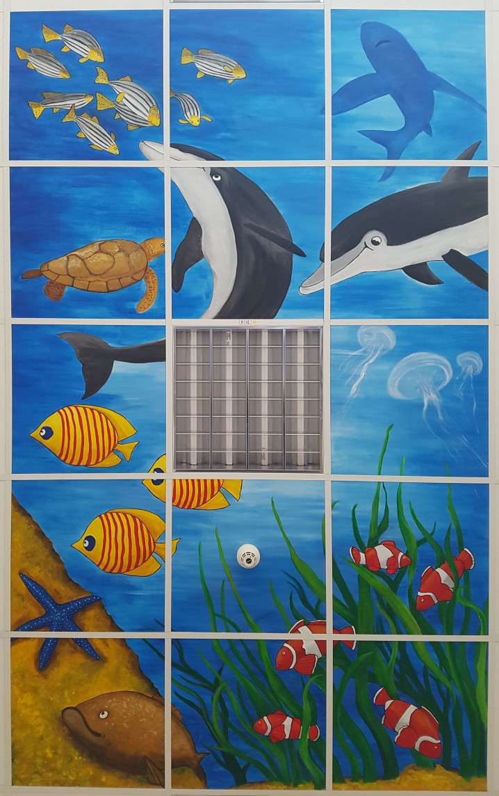 Das Bild ist 3,10 m x 1,85 m groß und dient dazu, die jungen Patienten während ihrer Untersuchungen und Behandlungen ein wenig abzulenken.