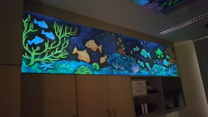 Auch bei geringer Helligkeit im Raum können sich die jungen Patienten an bunten Unter-Wasser-Bildern erfreuen.