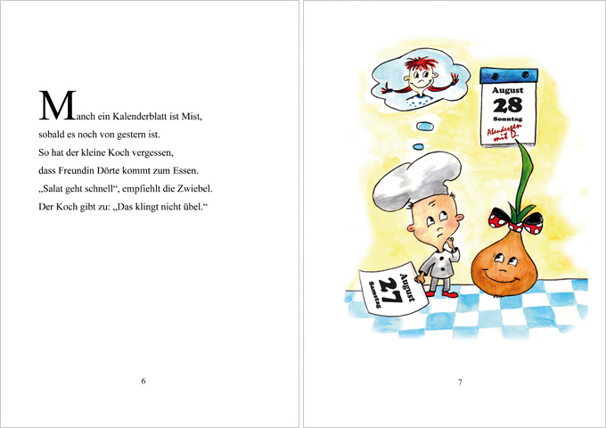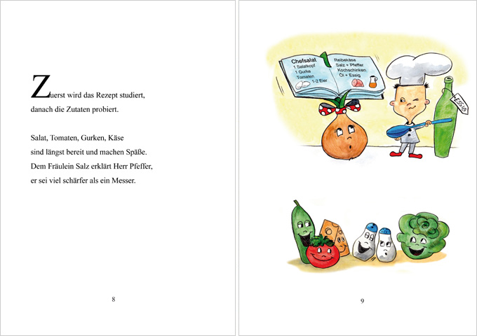 Der kleine Koch hat vergessen, dass Freundin Dörte zum Abendessen kommt. Es bleibt ihm nicht mehr viel Zeit, um etwas Leckeres zuzubereiten. Ein Rezept muss her, das schnell geht und die Zutaten müssen besorgt werden.